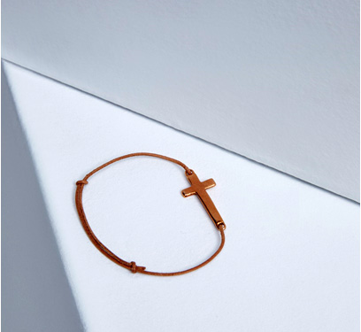 Το βραχιόλι φτιάχνεται με σουετ κορδόνι και διακοσμειται με χρυσό σταυρό.